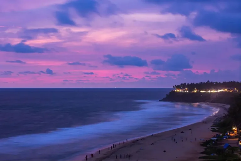 Varkala Beach, with its golden sands and striking cliffs, offers a unique coastal backdrop for wedding photography. The contrast between the blue waters and the earthy tones of the cliffs adds a dynamic element to the photos. Candid photographers love Varkala for its vibrant sunsets, which cast a magical glow over the entire scene, making every shot a masterpiece.